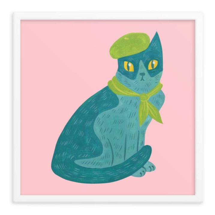 Happy Cat Framed Art Print - French