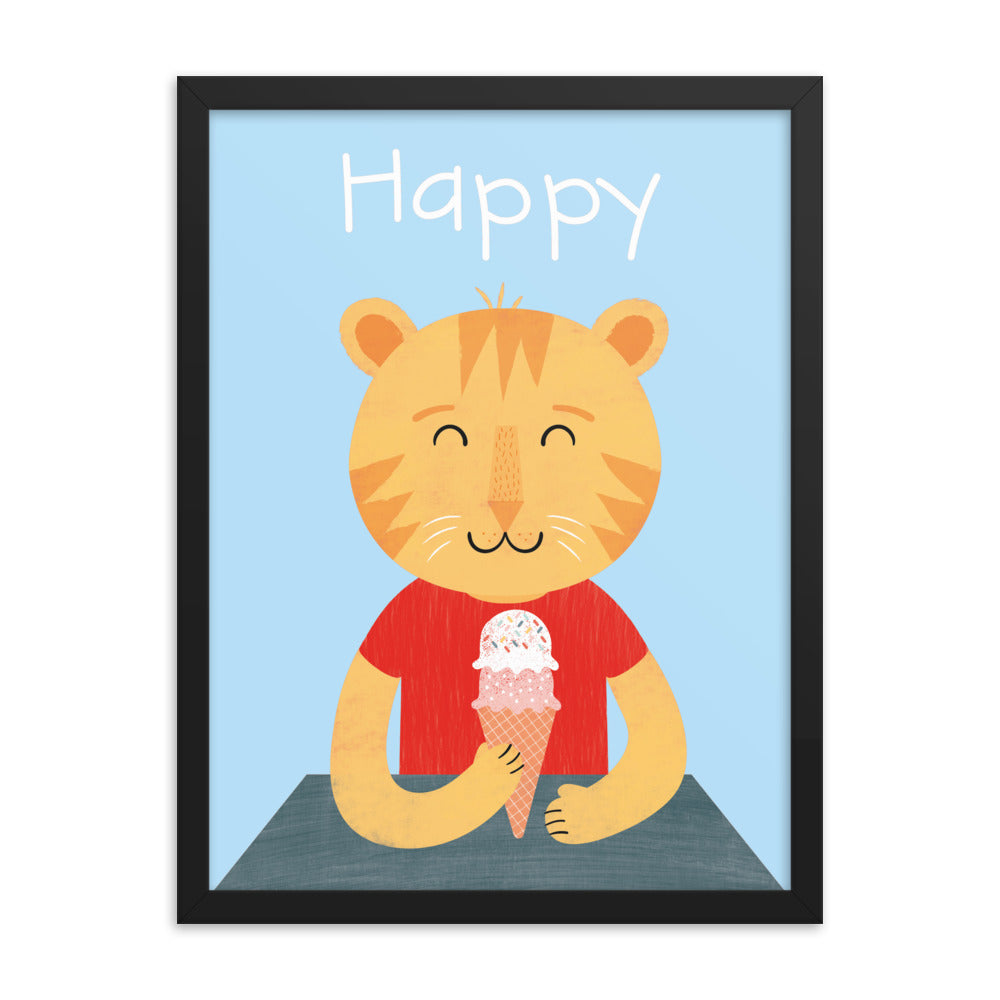 Happy Cat Framed Art Print - English
