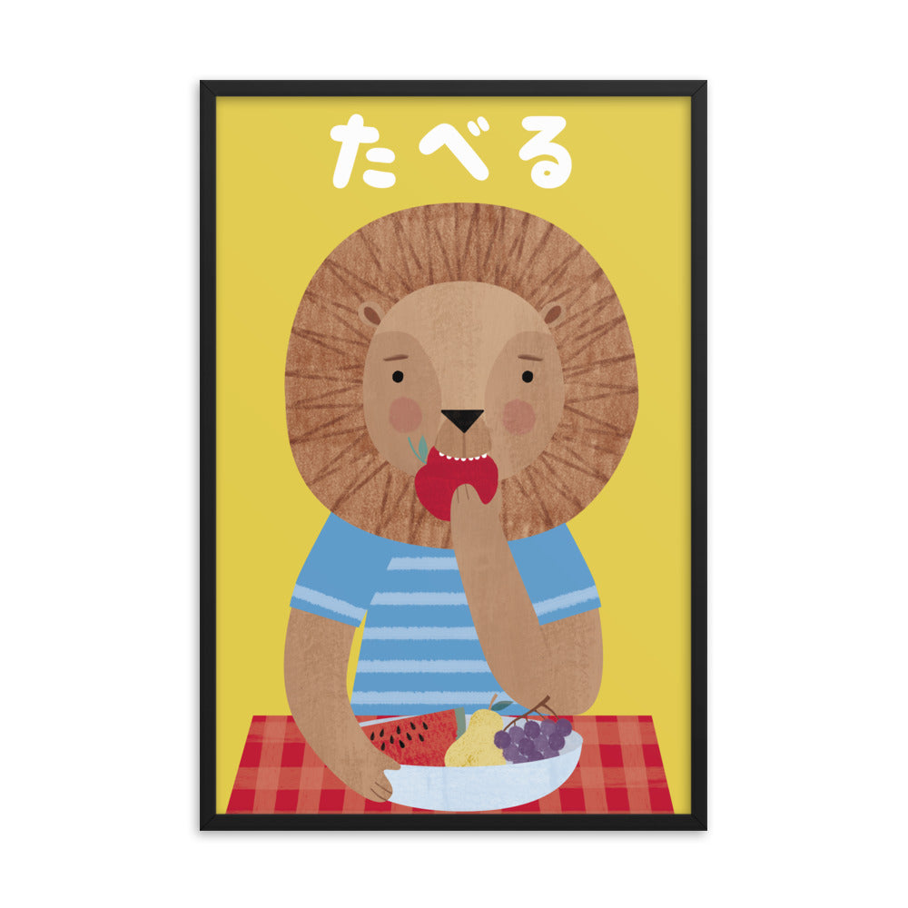 Eating Lion Framed Art Print - English
