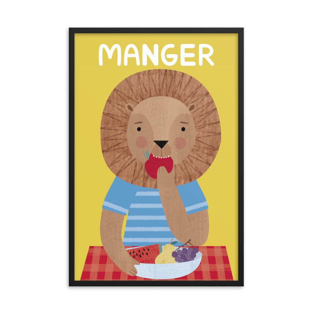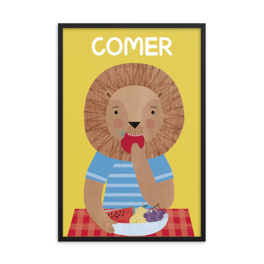 Eating Lion Framed Art Print - French