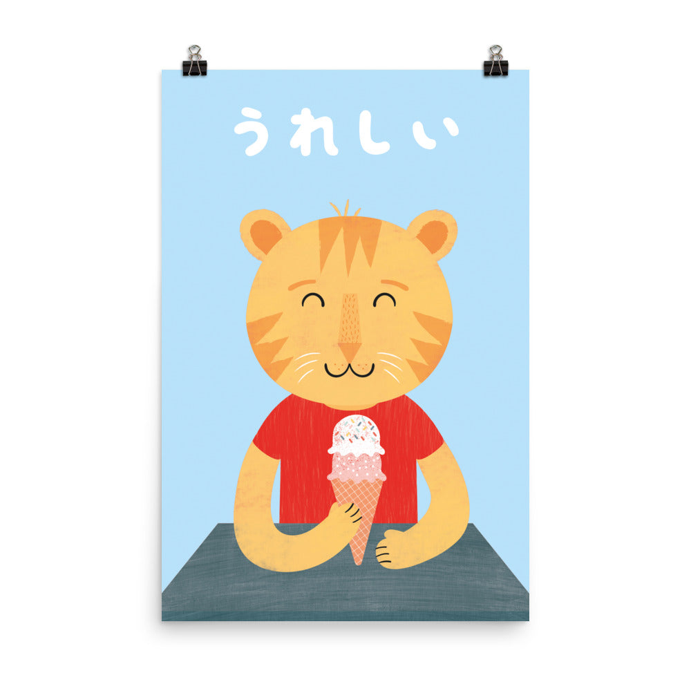 Happy Cat Art Print - Japanese
