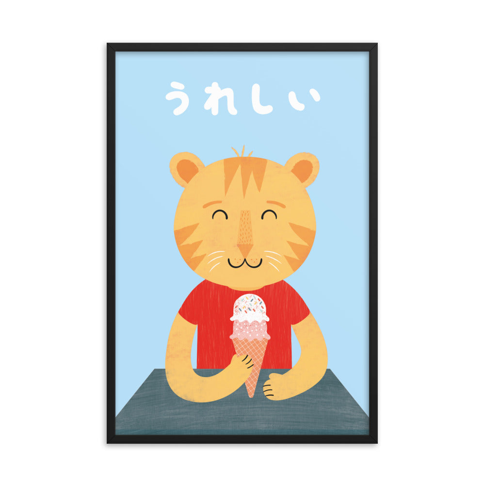 Happy Cat Framed Art Print - Japanese